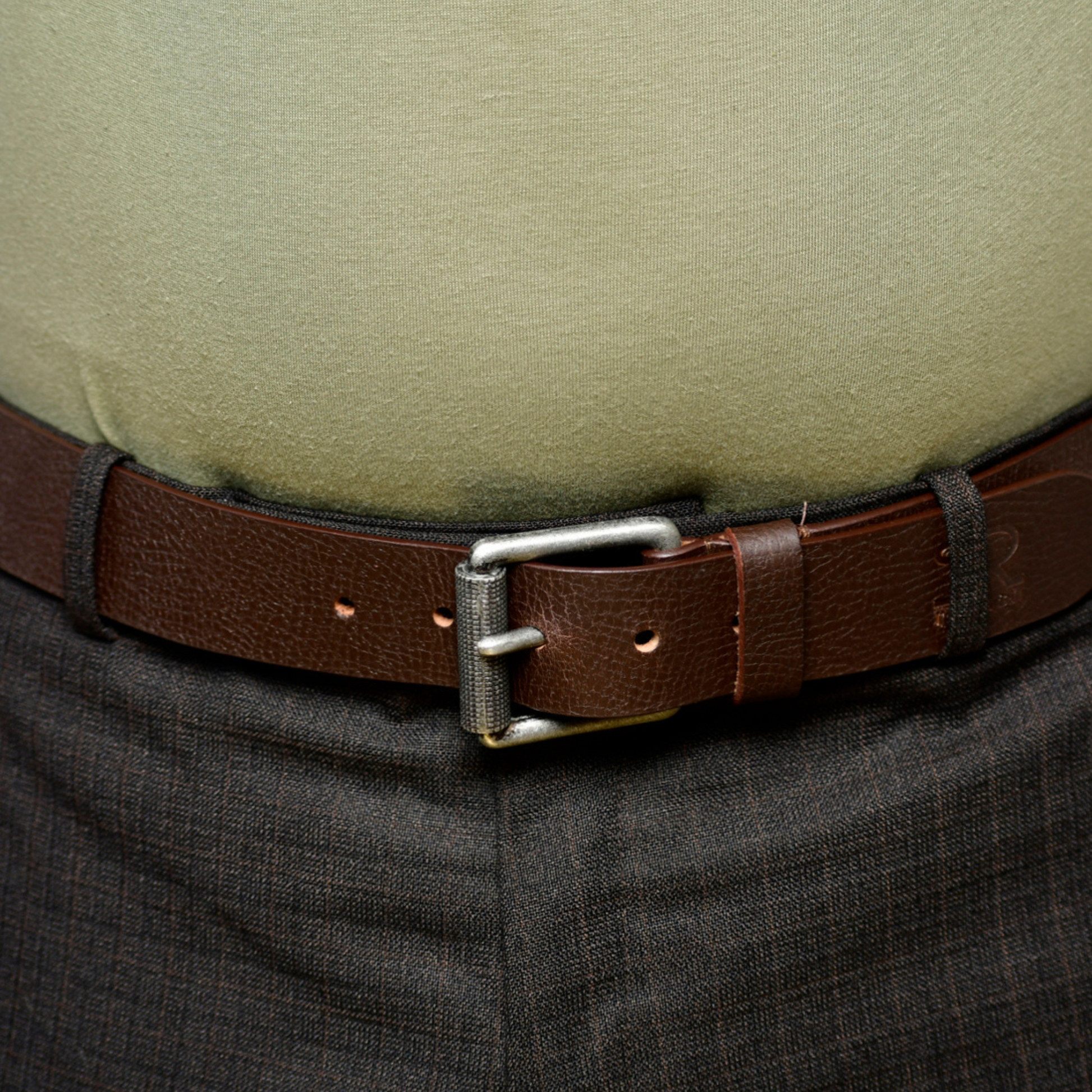 I'm absolutely thrilled with the outstanding quality of this full grain leather belt with a roller buckle. The craftsmanship is superb, and the durable leather exceeded my expectations. The roller buckle's stylish touch sets it apart. This purchase perfectly combines style and functionality. I'm so pleased that I'm considering getting another one!