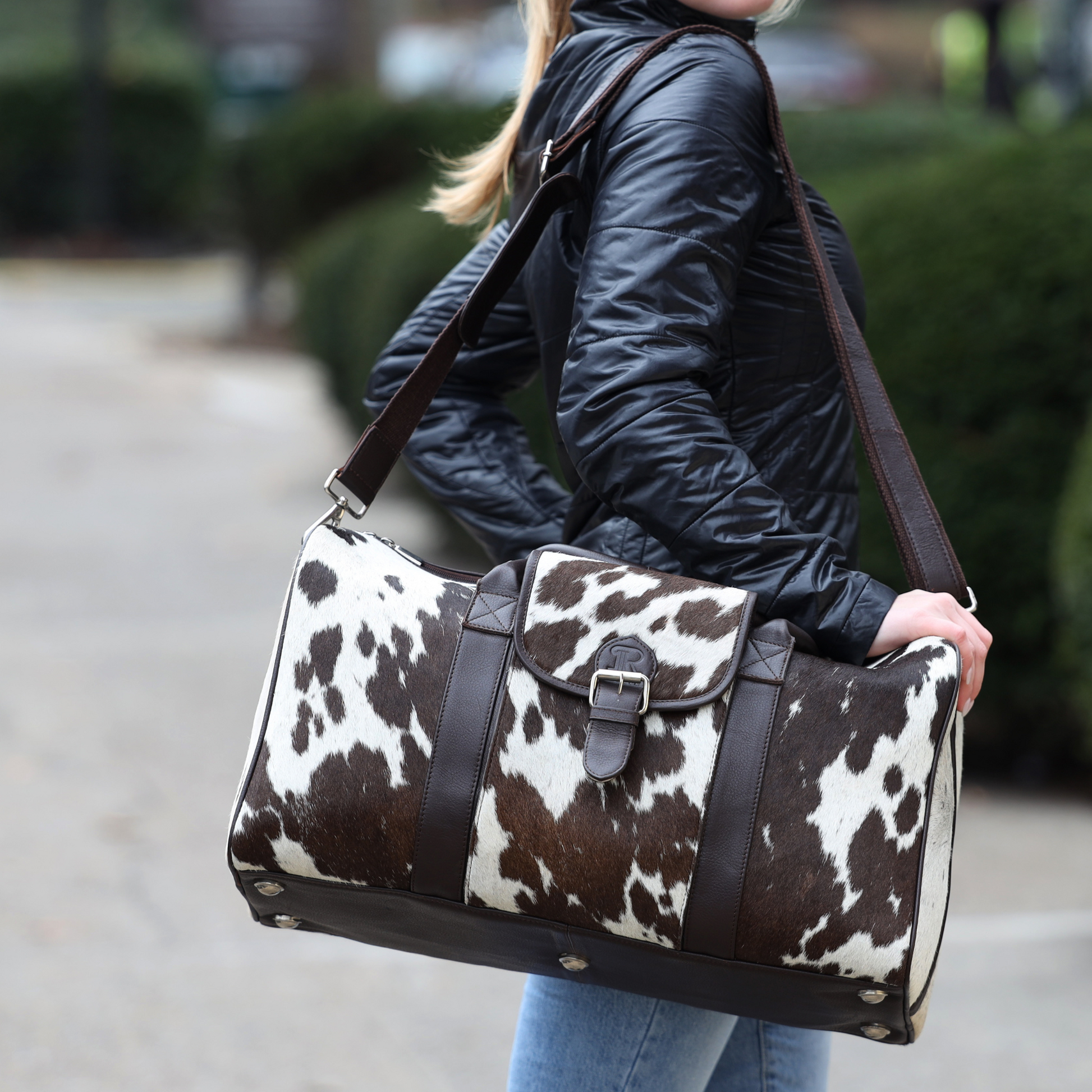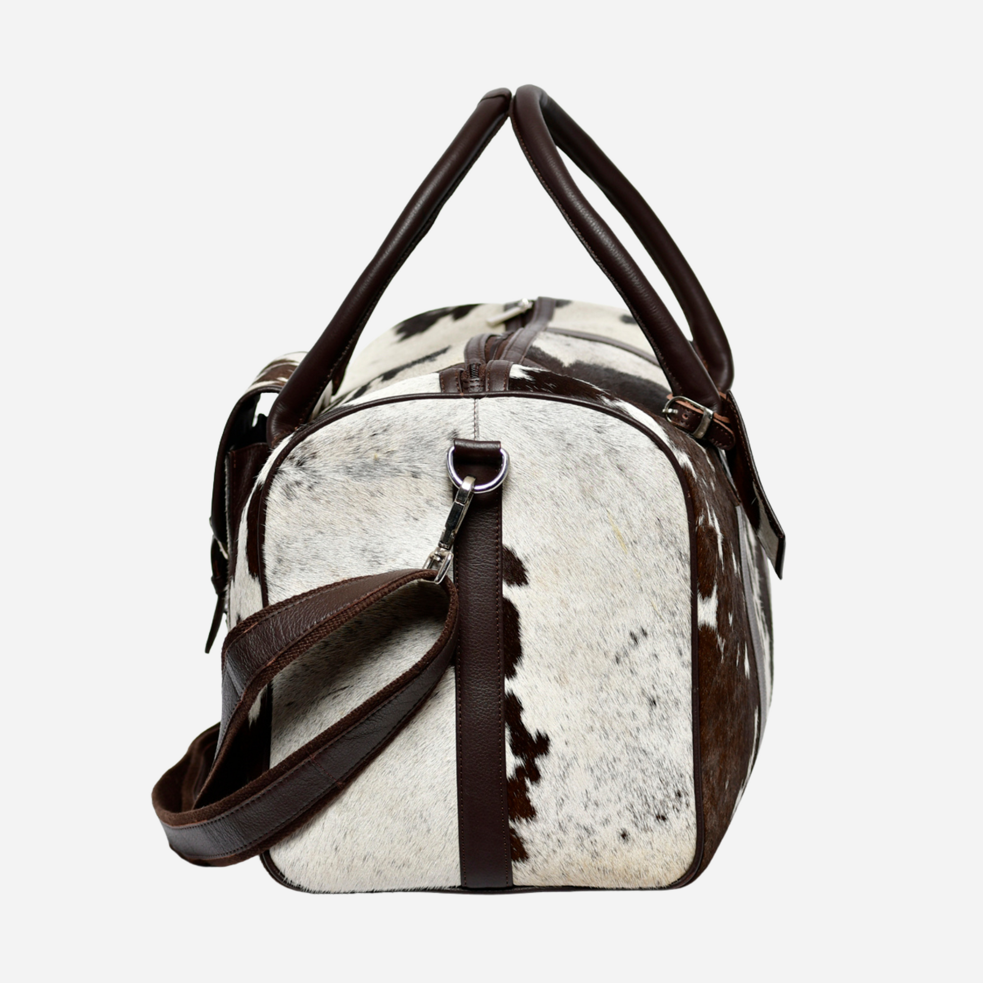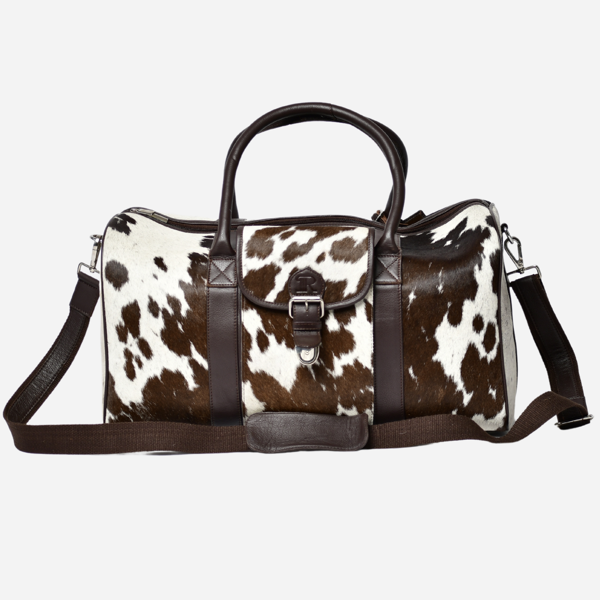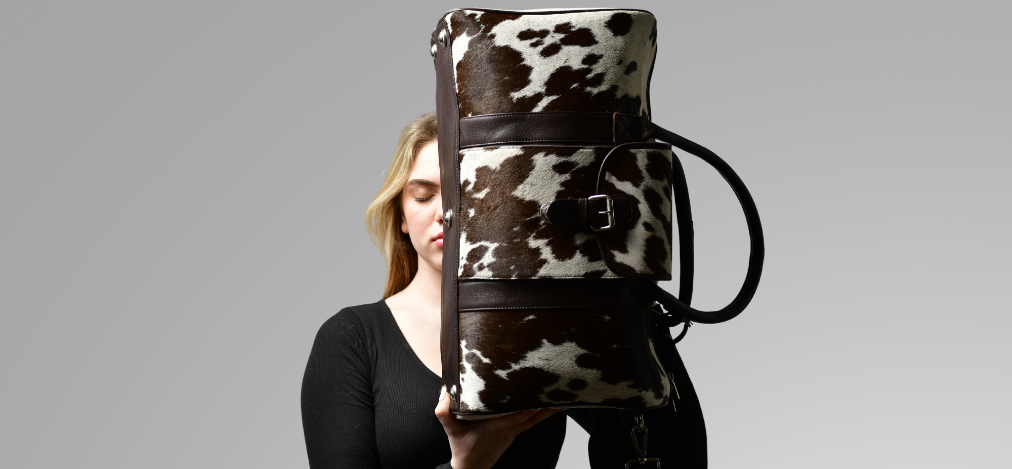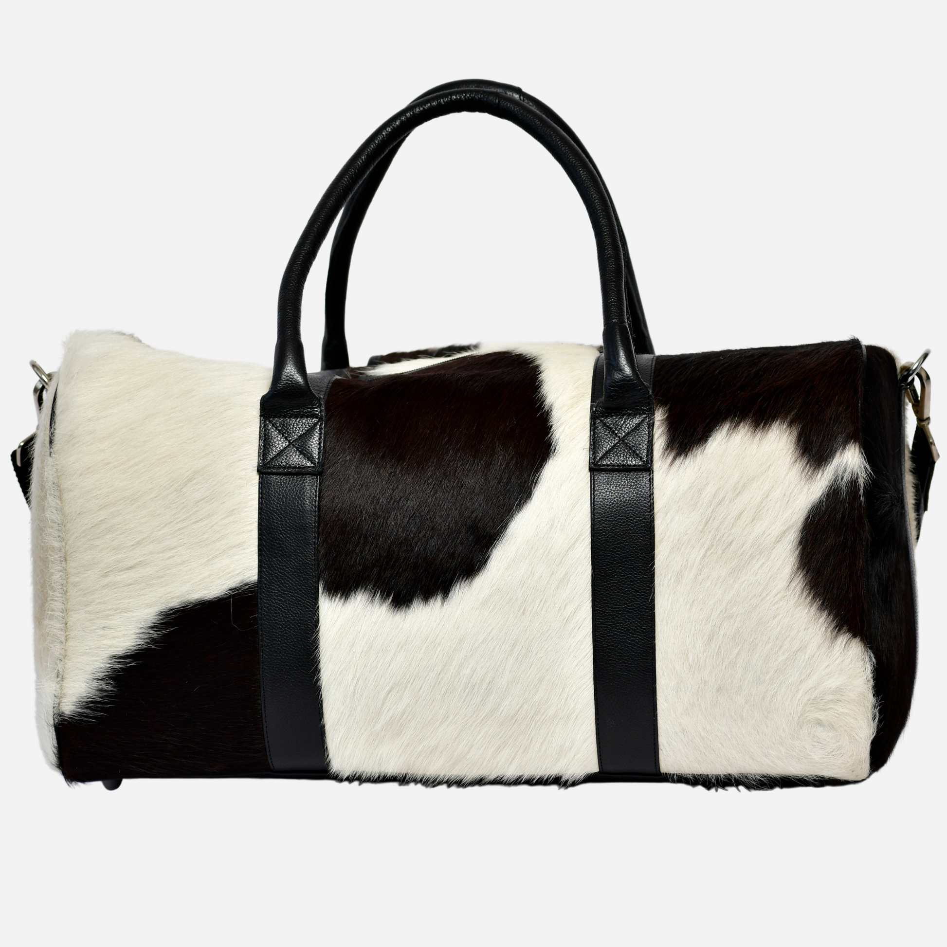 Gorgeous cow hide duffel bag made from super sturdy and premium leather has high quality full hair on hide. The bag is made from unbleached skin and hair of the cow which is one of the purest leathers and is naturally made. We only use exotic hair on cow hide and no two bags are alike. This bag takes the lead with its unmatchable strength and outclass look. Each Bag has its own unique characteristics, patterns and looks. Made after over half a million top quality stitches this bag becomes super sturdy and a visual delight both from inside and outside. Fashion does change they never go out of fashion.
